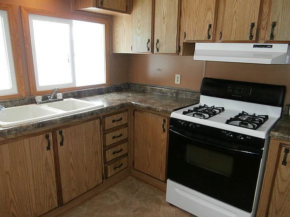 Updated mobile on large lot in family friendly Blackhawk Manor in Baraboo, Wi. Every room has new flooring, light fixtures and paint. All the repairs/upgrades were done by a professional home repairman. Kitchen is eat in, has new counter tops, Frigidaire fridge and stove, large deep sink and has two new windows above the sink for tons of natural light. Master bedroom has a 13 ft closet with shelves at one end. Additional storage available in the coat closet near front door and the linen closet in the hall near the large bathroom. There is also a nice shed that is roughly 8'x10' that is weather tight and and two extra deep parking spots. Spare bedroom is not as orange as the photo suggests. We do not smoke and have no pets. New windows in the kitchen and living room. The quiet and clean park features two playground and is within walking distance of a pool and many shops. Very quiet and friendly neighbors. Available March 20th. Lot rent $275 and includes garbage. Background check required by Blackhawk Manor.