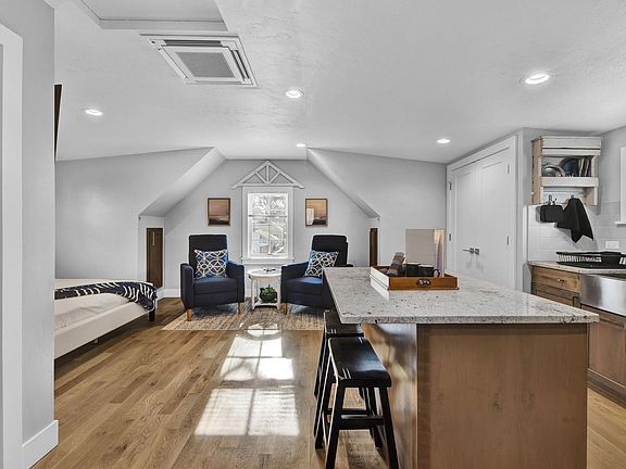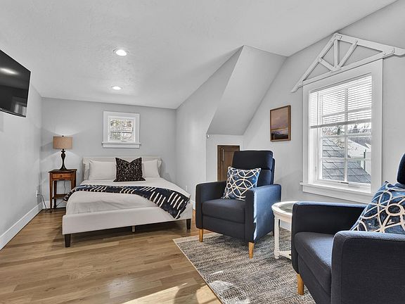 *FURNISHED RENTAL* The Hydeout is a gem of a studio apartment located above a detached garage in a residential area in Boise's coveted North End close to Downtown and other local favorites! Hyde Park featuring coffee, ice cream, and wines shops and places to grab a bite to eat is only .8 miles away. If heading outdoors is more your vibe, only 1.0 mile away is Camel's Back Park for a playground, outdoor gym, large grassy area, plus trailheads for hiking and biking! The apartment itself is open concept with a Queen size bed, seating area with Smart TV and a full size kitchen (minus a dishwasher). The private bathroom has a tile shower and single vanity, yet plenty of counter space. The apartment has ample storage for the square footage which makes keeping your belongings organized easy, especially for longer term stays! Stackable washer and dryer in unit is also a convenience. The Hydeout is 2.0 miles to the heart of Downtown Boise, 2.0 miles to St. Luke's Boise Medical Center, 1.4 miles to the VA Medical Center, and 3.0 miles to Saint Alphonsus Regional Medical Center. **Pricing subject to change based on seasonality and length of stay. Availability subject to change, please inquire for more information.** Owner pays all utilities and internet. Absolutely no smoking. No pets. Note that this unit is above the garage so stairs are required. Pricing and availability subject to change. Please inquire for more information.