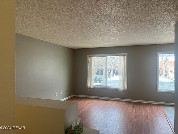 Beautiful townhome north of UND. Private off-street unit, 4 bedrooms, 2 full bathrooms, one upper bedroom has a deck, new carpet in the family room and wood fireplace. Patio doors to the fenced yard, double garage, steel siding and much more.