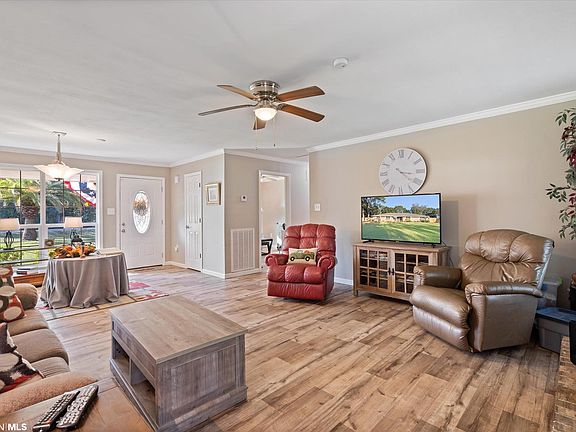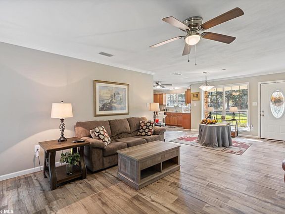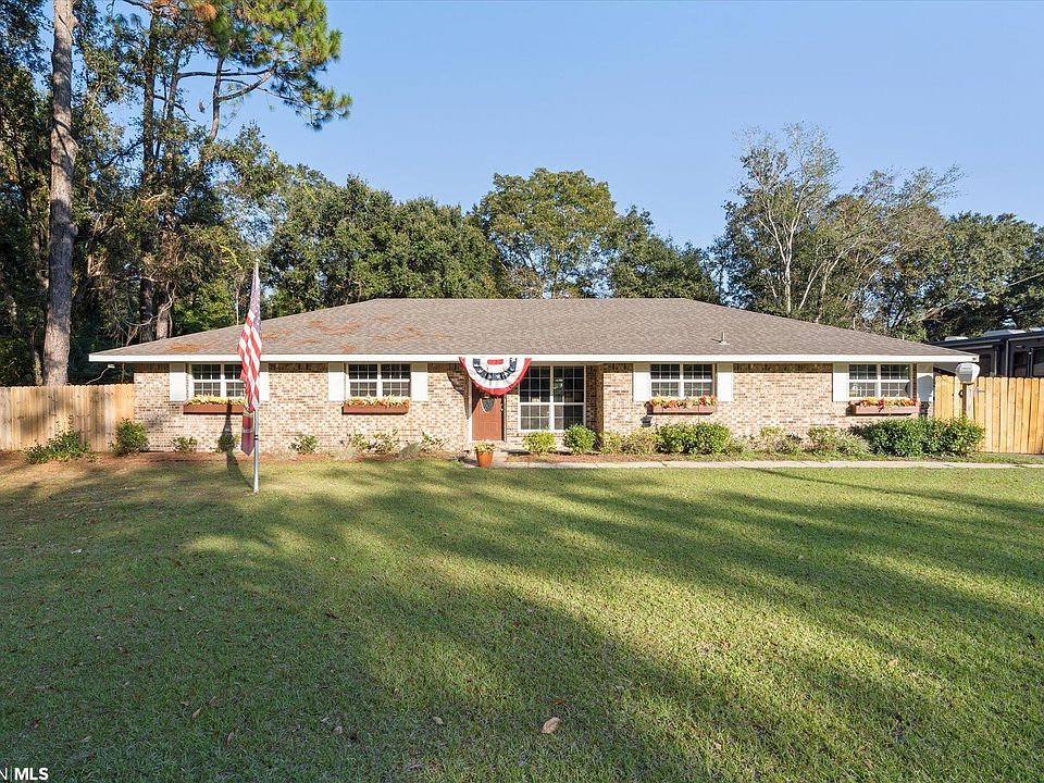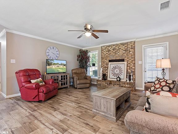 Welcome Home!! Country living but close to downtown Foley! Great one story easily maintainable brick home. Home is four bedrooms with three full bathrooms. 2019 Roof 2020 HVAC! Home has been totally upgraded! Open land bright iving room. Living room leads into your oversized eat in kitchen. Kitchen features travertine marble counter tops, island, great custom cabinets, stainless steel appliances, and great counter top space!! Home has a split floor plan with two primary suites! Newly remodeled primary bedroom features great closet space, freshly painted, and vinyl flooring. Primary bathroom off bedroom that features custom shower and Jacuzzi Primo tub. Home is located on a nice size lot with mature trees. RV hookup and Plenty of space for outdoor toys or entertaining!