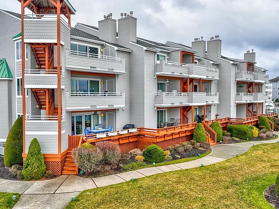 Canyon Club Resort and Marina is waterfront living at its finest offering luxury amenities such as an infinity pool, 2 additional heated pools, tennis courts/pickleball, picturesque landscaping and beautiful gardens throughout. For the boat owner there is a full-service, world-class marina. Unit 1209 is the only unit for sale that is offering a waterfront location with 2 bedrooms and 2 full bathrooms, furnished with an enclosed garage. It is located in the furthest building facing southeast with incredible waterfront views that you will enjoy immediately upon entering the front door. The surrounding waterfront landscape can also be enjoyed by your deck overlooking the harbor and marina. This beautifully appointed condo underwent a complete renovation from 2021 - 2022, with all new: flooring, HVAC, water heater, kitchen, appliances, cabinets, bathrooms, tile, doors and millwork. Unit 1209 is being sold furnished less a few personal items and is truly move-in ready. The 1st floor offers an open and inviting living space with a gas fireplace in the living room, a large sectional, ottoman and chair. The dining room is adjacent, and the kitchen has granite counter tops and a large peninsula for additional seating and plenty of storage. There is a covered porch overlooking the waterfront harbor. The 2nd floor offers the guest bedroom and the primary suite with en suite bathroom. There is a full bathroom off the hallway with a walk-in shower. There is also a laundry closet with a stackable full-size washer and dryer. HOA is $1100/QTR and covers all exterior insurances, exterior maintenance of buildings, decks and easements, maintenance of all landscaping, hardscaping as well as access to 3 pools (2 heated), tennis courts/pickleball, trash and recycling.