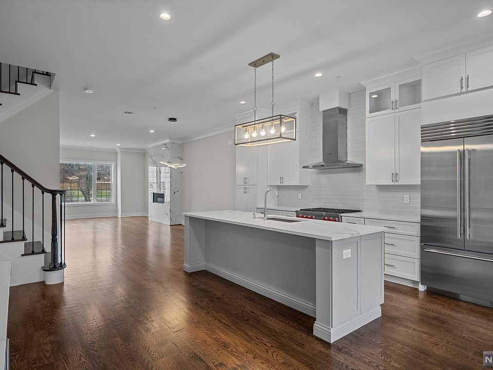 Welcome to The Alexa...Main level boasts 10ft ceilings, open living room and dining room, optional gourmet eat-in kitchen with quartz counters and GE stainless steel appliances, family room with gas fireplace and deck. Second Floor Master Bedroom complete with walk-in closets and spa-like Master bath, glass enclosed shower and double vanity. Ground level features 2 car garage, finished recreation room or den. The Alexa is a gated community situated on a beautiful and enchanting 13-acre property, just off the Garden State Parkway, with easy access to New York City, public transportation, world class shopping, dining, golf, and top-rated schools. Community amenities sit on an additional 2+ acres which include Pool, Clubhouse, Tennis, Dog Park, and Playground.