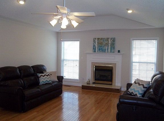Overlooking the pond in the Woodfield neighborhood. Two fireplaces, hardwoods in living room. Bedroom three would also make a great office, elegant master bath (10x14) with separate vanities, whirlpool tub, shower, and 8x8 closet in master bedroom. Extra large deck.