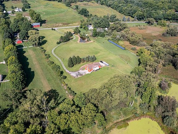 Enjoy an Equestrian lifestyle in the rolling hills of Mendon. Build your Executive Estate on these 11.4 acres across from Mendon Ponds Park w/ 20+ miles of riding trails. Video w/drone shows this unique offering! 2 tree lined ponds border the winding driveway leading up to the developed acreage ready to build, w/raised sand-bed septic, public water w/2" feed, buried electric & internet cables to the horse barn behind w/utilities & RG&E transformer installed behind pine trees near barn. 1997 37'x70' Stockade Buildings Stable Barn; stable ready 1st floor. *NOTE All Features included are in existing Barn*. Current owners, prominent in solid surfaces industry, used the best-known contractors to turn upper hayloft into a 'Timber Frame' Style Party House. Complete custom work & details provided by the owners in attached addendum. Must be seen! 26' bar,1.5 baths,200 Amp service, R-40 insulation, gas furnace & A/C, tankless H20 heater, woodburning stove++. 2nd floor Custom deck overlooks backyard that includes 3.5+ acres w/ ponds, maintained paths & abundant wildlife that are in Wetlands Reserve Program.