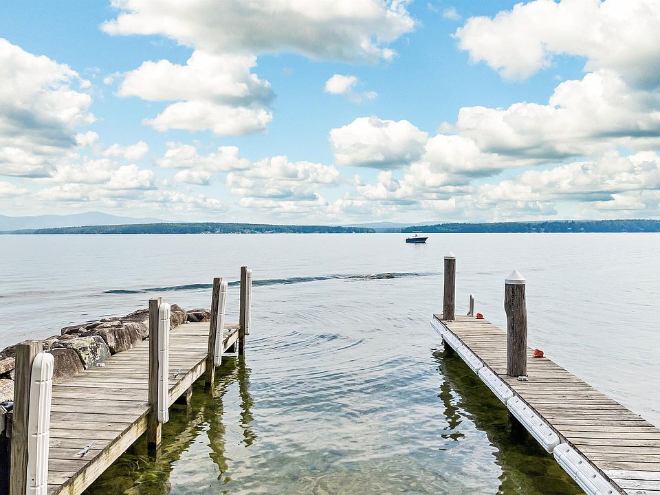 This rustic cabin located on the northeast side of Rattlesnake Island on Lake Winnipesaukee provides some of the most amazing 180 degree views on the lake. The waterfront consists of a u-shaped dock and breakwater, offering plenty of room for you and your guests to enjoy the crystal clear, sandy botton shoreline. Additional seating is located on an upper landing on the way to the cabin. For ease of getting your belongings to the cabin, the property has a large electric cargo lift. The cabin consists of a generous-sized deck perfect for outdoor cooking and dining and enjoying the spectacular views. Inside the cozy cabin, you will find a large sleeping loft, wood stove for cool nights, small kitchenette, and living area to relax or watch a movie after a long day on the lake. Another option is a hike on the many interior trails of the island with stunning views from the top. An exclusive benefit to all Rattlesnake Island property owners is Rattlesnake Landing, a parcel on the mainland providing 4 parking spots, a boat ramp, and docks for picking up guests or for loading and unloading. The property also abuts the access road providing easy access for any future renovations. Don't miss out on this affordable way to get on Lake Winnipesaukee.