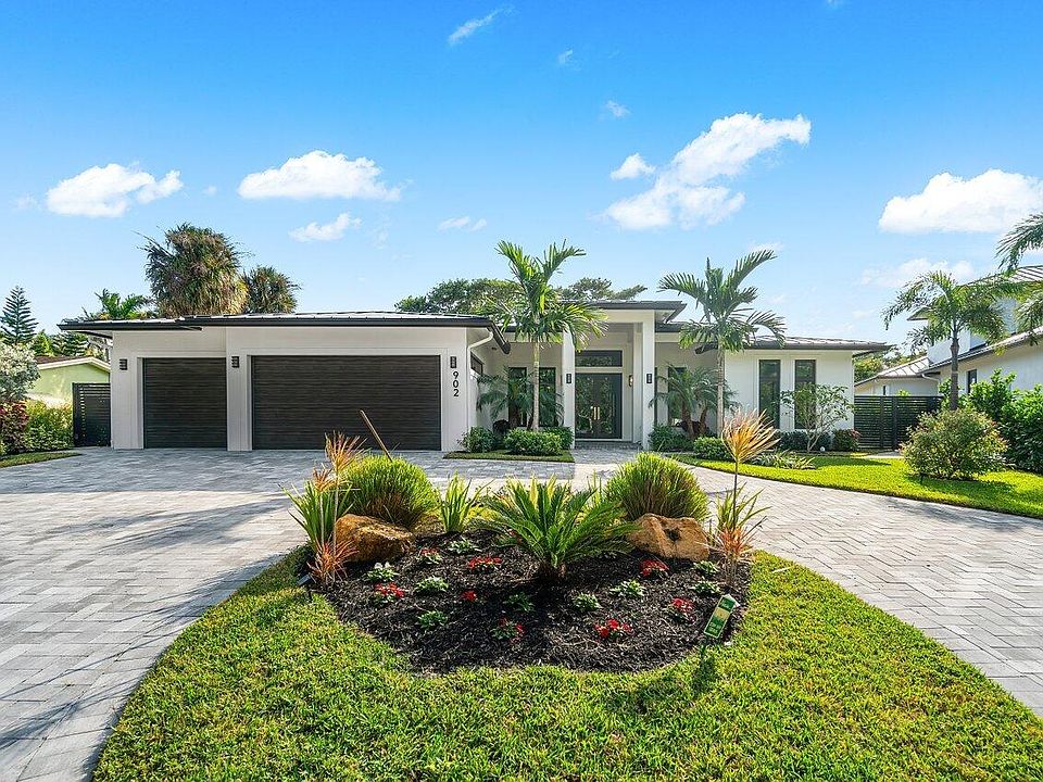 Welcome to your dream home in Delray Beach, Florida! This new construction masterpiece offers the pinnacle of luxury living in the hottest market of South Florida. Boasting 4 spacious bedrooms, 3 full baths, 1 cabana bath, and an additional powder room, this home ensures comfort and convenience for all. A beautiful 1 story MID Century Contemporary Modern Home with soaring ceilings and an amazing open floor plan with large island kitchen and living area. Featuring top of the line Viking appliances and walk in pantry. The Master suite a sanctuary for sophistication boasting his and her closets and a luxurious soaking tub with waterfall entry from the ceiling lined in modern rain showers and glass enclosure. Park your prized sports cars in the expansive 3-car garage, a haven for automotive enthusiasts. Step outside to your personal oasis through the rolling sliders that allow an inside and outside feel with tile leading out to an extraordinary pool area perfect for unwinding or entertaining guests against the backdrop of a lush preserve. Located in a prime area, Tradewinds Estates this home combines modern elegance with the tranquility of nature, offering a lifestyle unparalleled in the vibrant Delray Beach community. Whether you're hosting a casual gathering or showcasing your culinary skills, this space is designed to elevate your outdoor lifestyle, offering a perfect balance between modern elegance and the allure of tropical living.