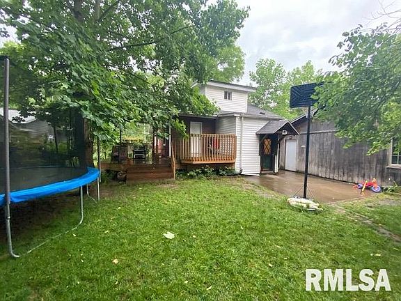 This Charming Brick home has 4-5 bedrooms, 2 bathrooms, large living room with fireplace, formal dining rooms, Fenced yard with deck and an enclosed porch! The detached building could be used as an apartment. It has 1 bathroom and contains approx 600 sq ft or could be converted back to a 2 car garage.