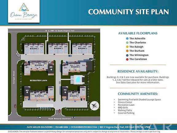 The Asheville floor plan is thoughtfully designed to provide the ultimate coastal living experience for you and your guests.  A 2-bedroom, 2-bathroom luxury townhome in the Ocean Breeze semi- oceanfront community, with approximately 1,300 square feet of heated space, the residence is thoughtfully designed with the latest in modern decor luxuries and this particular unit will come standard with the Premium Kitchen package.  Both ensuite bedrooms are located on the first floor while the living, dining and kitchen areas are on the second with a powder room for convenience.  Watch the beautiful sunrises from either of your two ocean-facing decks and take a dip in the resident-only pool after a workout in the onsite studio gym.  Call us today to select your lighting, countertop and appliance packaging and upgrades.  HOA fees are calculated based on square footage.    The Ocean Breeze Luxury Living Community is a collection of residences, each with private, covered parking, located in Kill Devil Hills just steps from the beach, local restaurants and boutique shopping.