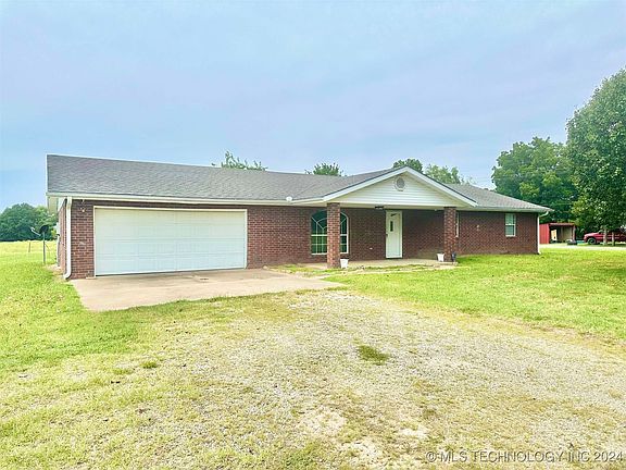 Check out this delightful three-bedroom, two-bath brick residence nestled on a spacious acre of land, conveniently located past the new ballfields on Sale Barn Road in Stigler, Oklahoma. Built in 1994, this well-maintained home boasts over 1,800 square feet of livable space, making it perfect for families or those seeking extra room to grow. As you enter, you'll be greeted by an inviting open-concept design that seamlessly connects the kitchen and living areas, ideal for entertaining or family gatherings. The kitchen offers ample counter space and storage, making meal prep a breeze. The large laundry room adds convenience to your daily routine. Retreat to the generously sized bedrooms, each designed with comfort in mind. The master suite features an en suite bathroom for added privacy and convenience, while the additional bedrooms provide plenty of space for family members or guests. There is a nice two car garage with a storage area for your vehicles. Step outside to enjoy your covered back porch, where you can relax and take in the serene surroundings. The property also includes a large storage building equipped with electricity, perfect for workshops, hobbies, or extra storage needs. With its fantastic location, spacious layout, and thoughtful amenities, this brick home is a perfect blend of comfort and functionality. Don't miss your chance to make this lovely property your own!