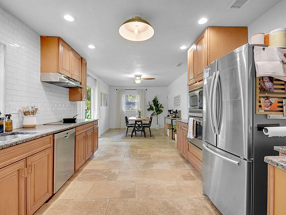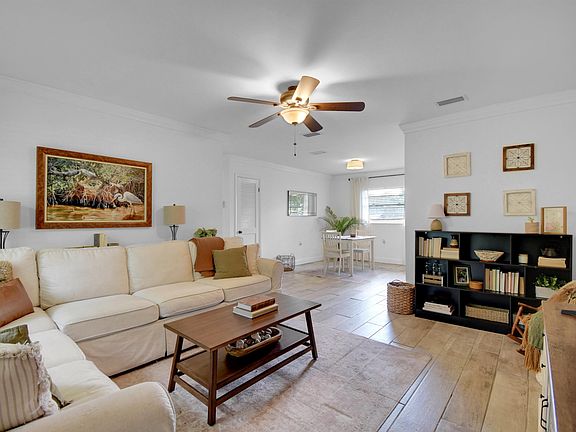 Welcome to this charming 3-bedroom, 2-bathroom concrete block home that perfectly blends comfort and style – and best of all, no HOA fees! Step inside to find a spacious, updated kitchen featuring granite countertops, modern tile backsplash, ample cabinet space, and sleek stainless steel appliances – a true chef’s dream. Both bathrooms have been tastefully renovated with contemporary finishes for a clean, modern feel. Enjoy tile flooring throughout, accented with elegant crown molding, offering low maintenance and timeless appeal. Outside, you’ll love the fully fenced yard – perfect for pets, entertaining, or storing your boat and other toys. Plus, the neighborhood includes convenient boat ramps, making it ideal for water lovers. Don't miss this move-in ready gem with no HOA restrictions – schedule your showing today!
