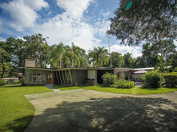 TWO SEPARATE and NICELY APPOINTED HOMES, GARAGE w/WORKSHOP and ROOM FOR SIX VEHICLES, 1+ ACRE CORNER LOT and NO HOA - these are just a few highlights of this amazing property. Main house is a 3/2 midcentury modern with a striking contemporary look. The living room, dining room, kitchen and den/office run across the front of the home, bedrooms are tucked off the home's hallway and the family room is in the back. You will LOVE the kitchen - spacious with room to seat a crowd and features the original (and abundant) cabinetry! Living room boasts one of two wood burning fireplaces. The den/office has windows all around, making it a bright and cheery place to work. Master suite has oversized bedroom, cedar walk-in closet and ensuite bath with shower. The family room in the back of the home has WOW factor - it's an expansive space with two large windows that bathe the space in light. Notice the terrazzo tile flooring, and a second wood burning fireplace. Wall of built-in shelving is ideal for storage/decor. You'll love the large utility room that's off the kitchen; it's more than just a laundry room - has cabinetry, work sink, quaint drinking fountain (!), & plenty of room for extra storage. Here you'll also have access to your patio where the privacy wall and surrounding lush landscaping provide you with your own little oasis. And then there's the second house - 3BR/1BA all on the top floor. Common living areas include a kitchen that's open to the living room and bath with tub/shower. Master bedroom is in the back and is roomy enough for a sitting area. Here you also have access to the roof. Speaking of the roof - both properties have GAF-60 mil TPO (single ply membrane) that's durable and energy efficient (roof on main home - 1 year old, roof on second home-3 years old). Ground floor of second home has a "garage center" - workshop and room for two vehicles in front, 4 vehicle capacity and separate entrance in back. Wired for 440 power. There's also a built-in shed for your mower & other equipment. Overall, it's super for residents that own many vehicles, a car restoration enthusiast or just for extra general storage. Other notable features: (1) main house- gas dryer, water, range, and (2) well for sprinkler. Both properties are move in ready and show exceptionally well. What a special place - act quickly and make your appointment to see it now!