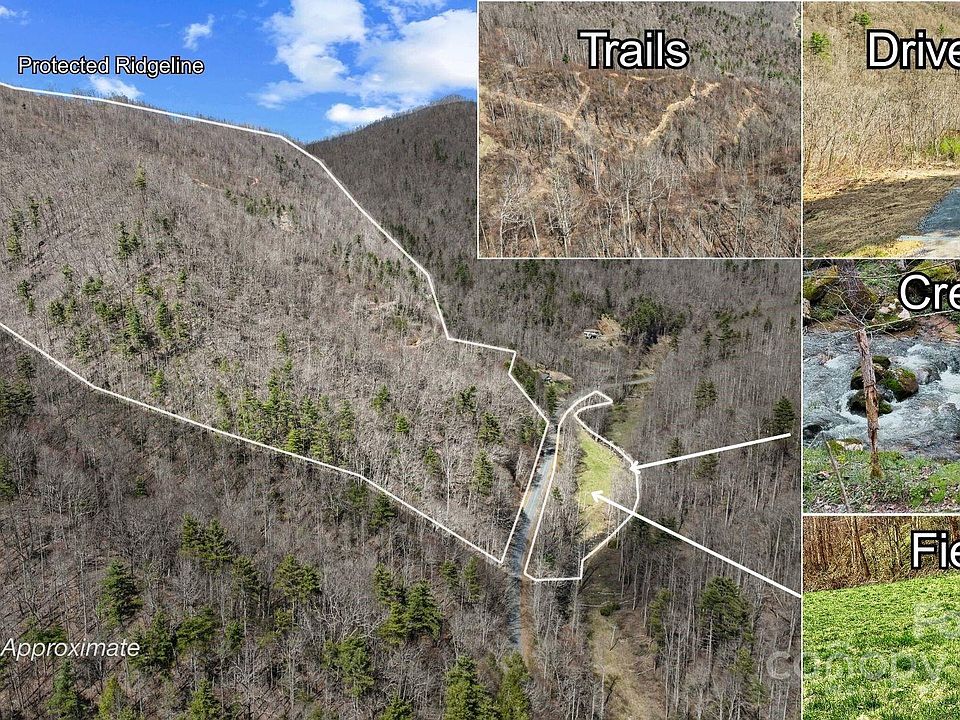 Climb higher to the protected ridgeline at the top, where panoramic views unfold over layered hills, offering that rare sense of owning your own piece of the Appalachians—untouched, private, and full of potential. Down by the property's lower edge, a gentle creek flows steadily, edging an open field that might be just right for planting a vegetable garden, setting up a picnic under the sky, or simply lounging with friends. All this rural peace is just about an hour from Asheville's shops and culture, blending isolation with accessibility. With varied terrain, this land isn't just property—it's your canvas for a mountain life immersed in nature. What would you do: build a cabin, start a homestead, ride horses along the trails, or turn it into a weekend escape from the hustle and bustle of city life?