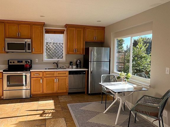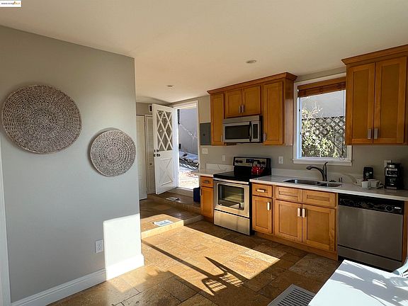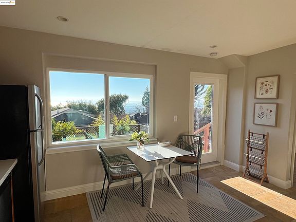 Perched in the north Berkeley Hills, this residence offers an unfiltered connection to the Bay, with sweeping views of the Golden Gate and Bay Bridges. Designed with both purpose and elegance, the interior seamlessly blends functionality with refinement an open kitchen with rich wood cabinetry, a sunlit dining nook framing the horizon, and a spacious living area where French doors provide a sense of openness while defining the space.The bedroom is a quiet retreat, complemented by a modern bath with natural stone finishes. Outside, a private deck and garden extend the living space, offering a captivating backdrop for morning coffee or an evening taking in the city lights in the distance. Nestled in a tranquil enclave yet just moments from Berkeley's rich cultural scene, diverse dining, and the scenic hiking trails of Tilden Park, this home offers a rare fusion of seclusion and connectivity. Set against the backdrop of the Bay, it provides a retreat from the city's rhythm while keeping every convenience within reach top-rated schools, bustling farmers' markets, and the intellectual energy of UC Berkeley.
