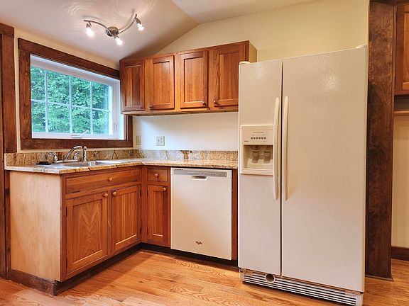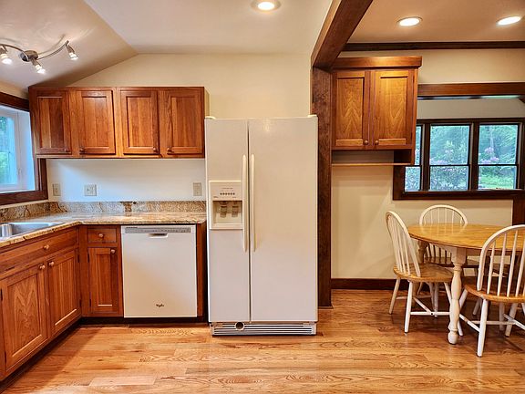 If you like being close to Bangor's many amenities but need a sanctuary at the end of a busy day you'll find it here! This house is nestled into the natural landscape at the end of a private road. Enter into the foyer featuring slate tile flooring and a large coat closet. From there pass through a French door into a beautiful family room/great room. Curl up by the gas stove/fireplace on a cool night. The room has large windows looking out to nature and also features a cathedral ceiling. The kitchen is updated with newer cabinetry and granite countertops. The informal dining area here also has floor to ceiling cabinetry for added storage. Completing the first level is a formal dining room and living room. These rooms could be converted into a first floor master suite if desired! There is also a full bath on this level. An attractive staircase leads upstairs to a half bath with laundry and two bedrooms. There is wood flooring throughout the house. A small deck off the kitchen leads you down to the back yard where you'll find a garden shed. There is also a two car garage. This property is unique and captivating. Don't miss this chance to call it your new home!