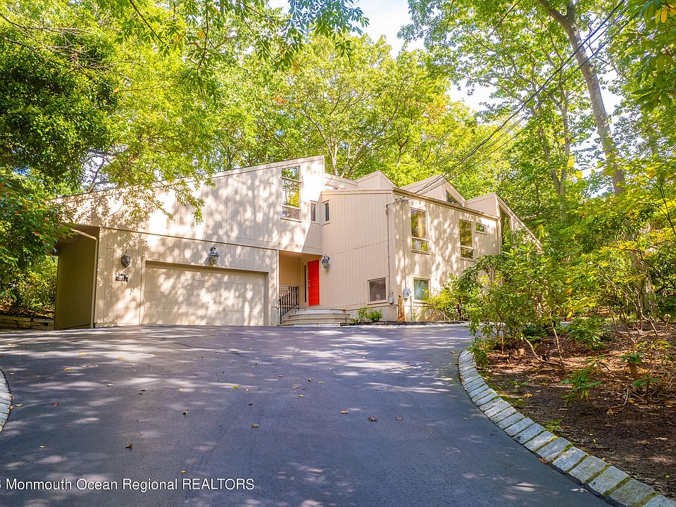 Tranquility and privacy abound at this unique 4 bedroom 3.5 bath home that sits under a canopy of trees Situated on peaceful, low traffic lane. Skylights and large windows allow nature's beauty to enter the interior of this spacious home featuring a upper level loft area overlooking the first floor living and dining areas. Nearby golf club, beaches and the Manasquan River contribute to this outstanding, highly desirable location in the hills of Brielle. Beautiful, one-of-a-kind home offers many built-ins, and custom details throughout. Vaulted beamed ceilings, wood burning stove, attached two car garage , and basement . SO MUCH POTENTIAL to refresh this home and make it your own.