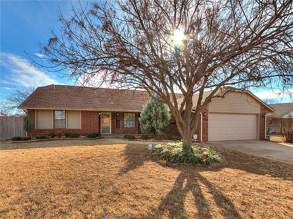 Gorgeous home on corner lot in the heart of Edmond (only one direct neighbor to the west, green belt behind)! On the exterior you will find a well maintained brick home home with low maintenance vinyl siding trim, gutters with screens, heavy glass storm door, insulated garage door, privacy fencing, 5 yr old roof and low maintenance landscaping. The living room features a curved brick fireplace, oversized mantle, accent lighting, surround sound, new paint and stained concrete floors. Kitchen and dining room have new flooring, white cabinets, breakfast bar, crown molding and plenty of counter space (Fridge can stay with acceptable offer). Master suite is a spacious room with two large closets, new carpet, 2" blinds, double sinks and shower tub combo. Secondary bedrooms have modern colors, new carpet, and large closets. Attic has12-16" insulation for energy efficiency. Seller is offering $400 credit for new paint/touchups.
