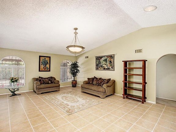 Wonderful 4 bedroom home in a great area, close to shopping, dining & freeways, with NO HOA! This stunning & energy efficient block home has gorgeous tile floors, huge vaulted ceilings, and is light, bright & spacious! Great room floor plan, huge master bedroom, plus three large secondary bedrooms. Full sized dining room w/ breakfast bar overlooks the charming full length patio & beautifully landscaped backyard, plus an added steam/ sauna room, with wood stove & 3/4 bath. Updated lighting, 2'' blinds, six panel doors and a newer A/C & water heater. The over-sized garage has loads of storage cabinets & a great workbench. Block fence, large lot, rain gutters. Inside laundry w/ large pantry. Washer, dryer & refrigerator included!