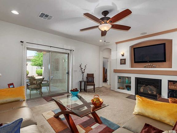 We know a winner when we see one....and trust me, there were certainly no participation trophies received for this magnificent retreat. You thought the front landscaping was perfect?? Wait until you jog to the backyard where you can be shaded by a sago palm and hold dance classes on your expansive pavers complete with a fire pit. If you haven't started writing your offer yet, I'll move on to tell you about the open concept living area with a fireplace! When meal time comes along, choose to eat at the breakfast bar or in the dining room; regardless, you'll benefit from stainless steel appliance crafted cooking. We can't wait to share this home with you...it is meticulously maintained and shines as bright as the Arizona sun.