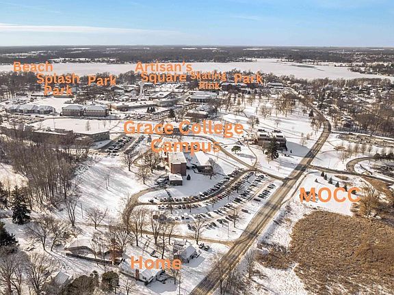 Literally TWO HOUSES in one! Suitable for multi-generational, rental property, Airbnb, or just loads of entertaining! 4 beds & 3 baths total & so very close to Grace College Campus! This split ranch has so much flexibility offering daylight, one-bedroom living quarters in the walkout lower level perfect for In-Law, older teen, or college rental/duplex potential PLUS its own one-car, attached garage! Main level of this beautiful home welcomes you inside with gorgeous, hardwood floors into the open concept living, dining & granite kitchen area that flows straight into the ginormous family/theater room perfect for entertaining or quality time with family. At $125 per square foot, you get all this and more: office, primary suite w heated bathroom floor, central vac, geothermal efficiency, plenty of parking!