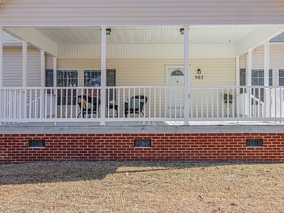 This lovely 3 bed, 3 full bath home sits on a generous 1.55 acre lot and offers a serene pond view, providing the perfect retreat in a fantastic location! Featuring a desirable split-bedroom floor plan, this home offers both privacy and functionality. Whether you're enjoying the spacious interior or relaxing on one of the porches or decks, this property is ideal for both quiet living and entertaining! The bright and open living room offers a welcoming atmosphere! Beautiful quartz countertops and a large center island make the kitchen a chef's delight with plenty of space for meal prep! A spacious master suite with his/her bathrooms, walk in closet, and a new handicap accessible walk in shower provide comfort and convenience. The secondary bedrooms have walk in closets and there is a great laundry room at the side entrance! You'll also find a walk up unfinished attic with tons of floored space. Walk through the breezeway and enter the oversized 2 car garage that can accommodate a lift and has walk up storage! Grab a pear from the pear tree and relax as the sun sets! All this is within 2 miles of US1!
