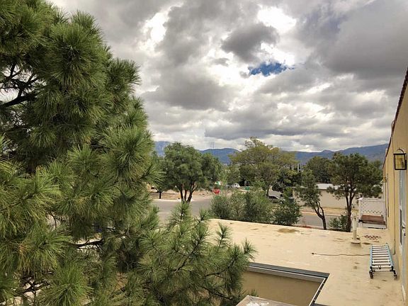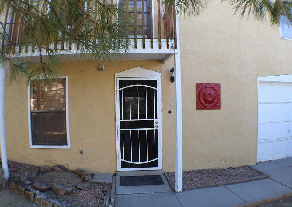 Charming 2 bedroom 1.5 bath NE Heights Townhome! Open living areas with huge windows and cozy fireplace. One bedroom and half bath downstairs. A cool spiral staircase takes you upstairs to Master bedroom Loft with a second fireplace. 2 view decks! Private backyard with covered patio. Superbly convenient location and no HOA. Refrigerated air! Home is sold AS-IS.