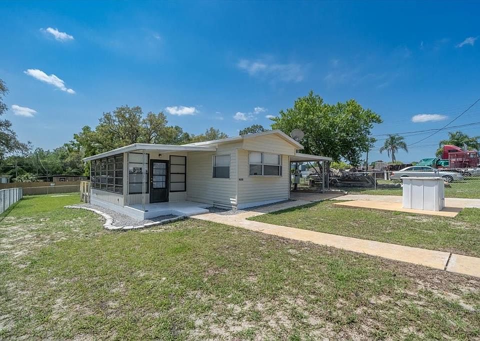 NO HOA! AMAZING 2 BEDROOM, 2 BATH HOME with an oversized driveway and carport. You own your own land! Comes with all new furnishings and completely remodeled! It has over 1300 usable sq footage. Updates include new kitchen cabinetry, lighting/fans, vinyl plank waterproof flooring, new blinds, window treatments, drywall walls, bathrooms and carpeting in Florida room and porch area. The floorplan includes a laundry/bathroom/storage/workshop room. A fence that was just installed this week. It also comes with an oversized brand new 2022 air conditioner. and fully updated electric panel and wiring. The home also features a rear deck overlooking the backyard. NO water bill since it's on a well. Easy access to public transportation and close to hospitals, doctors, shopping, restaurants, Suncoast Express Way. Located 1 mile from the hub of Hudson. Only 5.7 miles to the beach in Hudson. Only 38 miles to Tampa International Airport! Sold As-is. Right to inspect. Nothing needs done. It’s move in ready! This one won’t last.***CASH ONLY DUE TO AGE OF MOVIBLE***