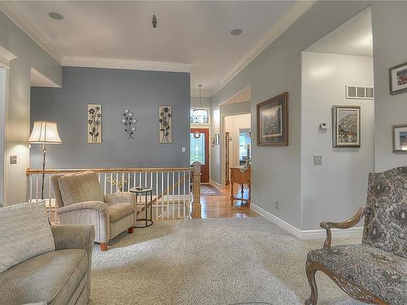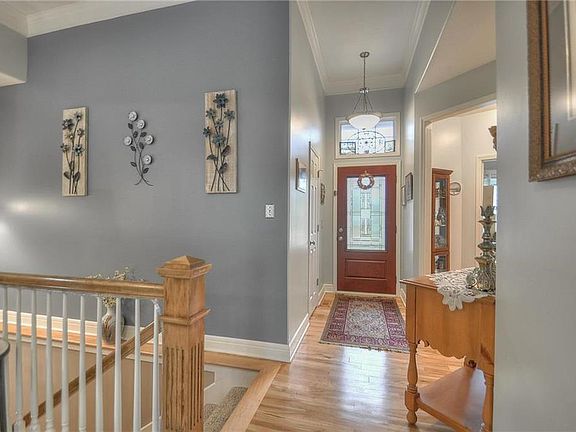 Don't wait to see this well-maintained reverse 1.5 story! Located in convenient Brooke Meadows, this home has it all! Spacious great room with upgraded trim, built-in speakers and gorgeous fireplace leads into the open kitchen/dining area with a huge island and plenty of seating for all. Main floor master with access to maintenance-free deck PLUS 2nd bedroom on main could be a study/office.
