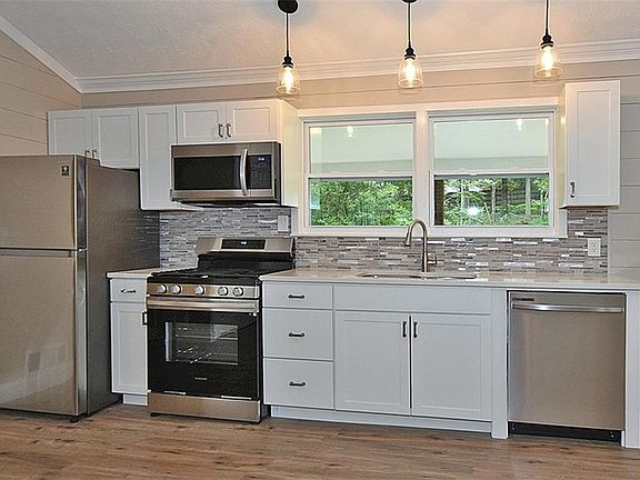 Completely remodeled Bungalow in lake community on .4 Acre lot w/ fenced yard & ready for October 1, 2024 occupancy in the EAST Forsyth High School district! Lots of upgrades: Stainless Steel appliances, Quartz countertops, LVP flooring thru-out, tile backsplash