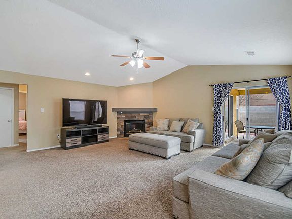 This home is the perfect find! Beautiful living area with a cozy and stunning fireplace! Separate dining area adjacent to the kitchen featuring granite countertops with accented backsplash. Nice master suite with walk-in closet and access to the lovely patio. Master bath has a garden tub with dual sinks. Landscaped backyard, walled for privacy. House also has solar. This one will go fast so come see it NOW!