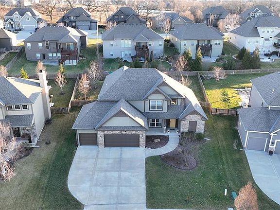 Amazing Custom 1.5 story Chandler plan by Hearthside! This popular plan was custom built with lots of extras! Starting with a 2 food deeper garage w/ drop zone & floor drains that is suspended for extra storage or finishing space below! Lots of extra upgraded tile and granite thru-out. Larger kitchen island w/ walk-in pantry, beautiful painted cabinets to the ceiling with glass doors on additional uppers, built in wine rack, stainless appliances including gas stove. Main floor has a formal dining, large great room with new carpet, ceiling fans, window covering, gas fireplace & vaulted ceiling. Main floor primary suite with new carpet & large walk-in closet. Upgraded master bath with double vanities, extended shower with dual shower heads & jetted tub. Breakfast room walks out to back yard is perfect for entertaining with beautiful, stamped patio that is partially covered and has hard plumbed 6ft. gas firepit table, trees & wood privacy fence. Main floor laundry completes the first floor. Upstairs includes 3 large bedrooms, 2 baths & a loft. 3 zoned hvac allows for comfort on all levels. The large basement is stubbed for bathroom and bar with 2 egress windows. Ready to finish. And all the extra space in the suspended garage for storage or finished space. This home also has exterior holiday outlet for convenient holiday lights and additional outlet on covered patio, perfect for mood lighting. This home is a must see in a great neighborhood conveniently located with community pool and trails.