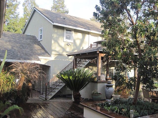 Custom home in the old Walnut Orchard! Built in 1999, this home features a main house of 1700 sq ft with 3 bedrooms and 2 baths. Living area features hardwood flooring and kitchen includes granite counters. Central vacuum system in main house. The detached in-law unit features approximately 700 square feet and includes an office, living area and separate bedroom. 1/3 acre lot boasts mature oaks and tropical foliage. Outdoor kitchen, outdoor shower, and playhouse are additional amenities. Redwood deck with sitting area and outdoor gas fire pit. Additional "artist's studio" with swinging door that opens to garden area. Very private, next to park, with lots of extras in this home.