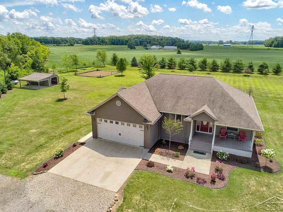 Where to begin with this breathtaking property? This beautiful and clean home is immaculate and features 4 bedrooms and 3 full bathrooms, office or potential 5th bedroom, full finished basement w/egress windows, split ranch w/master suite w/ tiled walk in shower and jet tub, over 3 acres w/beautiful landscaping, on demand water heater, heated garage w/ marbled epoxy floors, large new deck waiting to be covered if you desire. Nice shed with concrete floor and covered lean to. Beautiful maple and cherry hardwood floors, gorgeous kitchen w/breakfast nook, maple cabinets, granite counters. Main floor laundry. Scenic 3 acres surrounded by farm fields. One of a kind home!