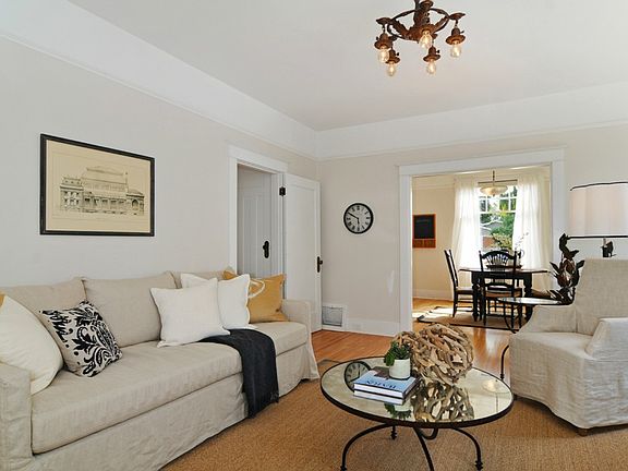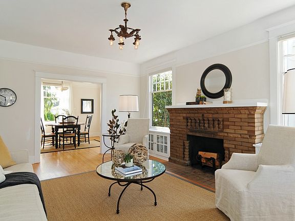 A beautiful 1918 two story Craftsman with a wonderful blend of Old World Charm and remodeled updates. Light filled formal living and dining rooms with high ceilings, hardwood floors, built-ins and a wood burning fireplace. The remodeled kitchen has granite counters, glass backsplash and stainless appliances. Upstairs has two generous size bedrooms, potential office or sitting areas and a full bath. Vintage lighting throughout. Updated, electrical, plumbing, insulation and new roof in 2012.