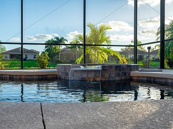 Looking for warm place to get away from cold winter, this Floridas golf resort waterview home will be a prefect sunny gulf coast life retreat. This one story home features 3bedrooms,2 bathrooms, plus a den/or office, with heatable salt water pool and hot tub, fully enclosed lanai boasting a tranquil sunset on water view bringing a perfect blend of relaxation. The home is nestled within the prestigious River Stand golf country club in a gated community offering members with exclusively amenities like golf, pickle balls, tennis, pools, tiki bars, restaurants and weekly social events.