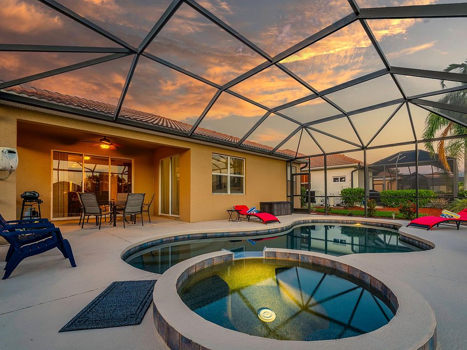 Our home is luxury furnished with high end furniture, fully stocked kitchen with stainless steel appliance, granite countertops, an office with view of pool and lake. Open-concept living and dining areas, ideal for entertaining guests or enjoying family gatherings, Step outside to your private pool area overlooking serene water views, where you can unwind, soak up the sun, and experience Florida life style!