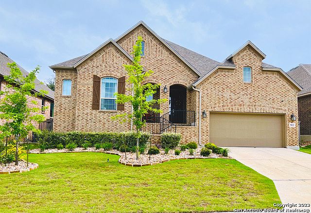 Immaculate one-story traditional 3 bed/2.5 bath, 2322sqft home with 3 car tandem garage in the Front Gate subdivision in beautiful Fair Oaks Ranch. Open concept floor plan with lots of natural light throughout. The large open kitchen features granite countertops, custom cabinets, recessed lighting, oversized island and walk-in pantry. The enormous family room features a cozy fireplace and access to the covered patio and back deck. Spacious main bedroom w/ceiling fan & walk-in closet and the bath features double vanities, garden tub & glass-enclosed walk-in shower. Two secondary bedrooms offer plenty of space. Complete with a large office space.