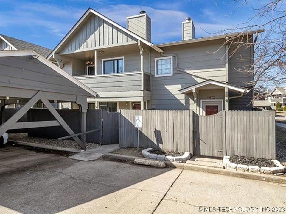 THIS CHARMING condo is ready for you!! Updated with character throughout. Wood burning fireplace with vaulted ceilings. Enjoy your primary suite with walk out balcony, walk in closet and vanity. Updated kitchen with modern amenities. Condo offers community pool and is in JENKS SCHOOLS! Blocks away from riverside walking trail.