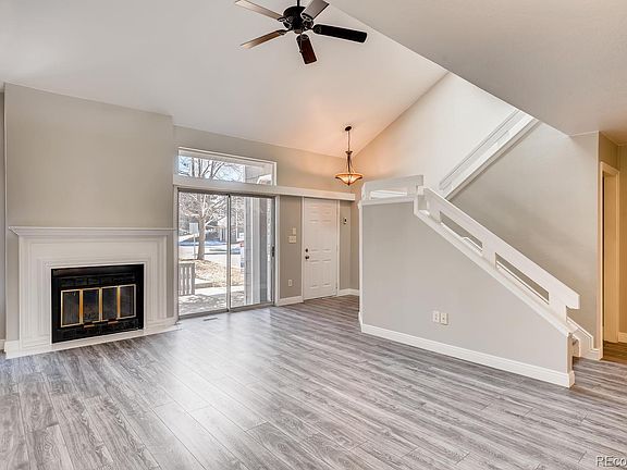 Completely updated townhome in a convenient location with a finished basement and two car attached garage! Easy ground level access to the front door with visitor parking and the mailbox nearby. Welcome inside the vaulted entry and note the weathered gray wide plank laminate flooring that extends through main floor, up the stairs and the second level - there is no carpet at all! Generously sized vaulted living room with plank wall and wood burning fireplace with tile hearth. Dining area flows into the bright kitchen featuring brand new white shaker style cabinets with 42" uppers, adorned with beautiful Quartz countertops enhanced by the herringbone tile backsplash. Brand new stainless steel appliances include smooth top range, dishwasher, microwave and refrigerator. Main floor bedroom with charming plank wall and access to the 3/4 bath with modern tile floors, matching shower shelf and frameless shower door, plus new vanity with Quartz top. Loft at the top of the stairs offers additional possibilities for your use. French doors at the master suite open to the large space with walk in closet and a brand new solid wood vanity with soft close doors and drawers, dual sinks and a marble top. Brand new bathtub with shower niche and stylish hexagon tile floor plus both bathrooms have brand new toilets. Imagine the benefit of pulling into your two car garage and entering the finished basement with new tile floors, laundry area and space for crafts and storage. Other updates include 6 panel doors, nickel door hardware, all new base trim, new interior paint. Interior location in the community, near the Highlands Ranch rec center at Westridge, short distance from shopping, restaurants, Town Center, C470!