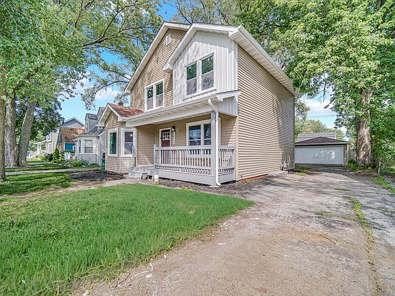 This newly constructed 4-bedroom, 2-full bathroom home is built on a old concrete block foundation. Everything inside is brand new, including the plumbing, HVAC, and electrical systems. The main level features a full bathroom, a bedroom, a spacious living room, dining room, and a beautifully appointed kitchen. The kitchen boasts 42-inch tall cabinets, quartz countertops, a modern backsplash, and a brand new 4-piece appliance suite. Thick vinyl plank flooring extends throughout the kitchen, dining room, and living room. Upstairs, you'll find three comfortably sized bedrooms, a large full bathroom, and a convenient laundry room. Both bathrooms feature porcelain tile that wraps around the tubs and covers the floors. Outside, a welcoming front porch and a brand new deck in the back offer space for relaxation and entertaining. A detached two-car garage provides ample parking and storage. The property is situated among mature trees on a quiet street, close to schools, shopping, and restaurants. Come and see this house - it's a must-see!