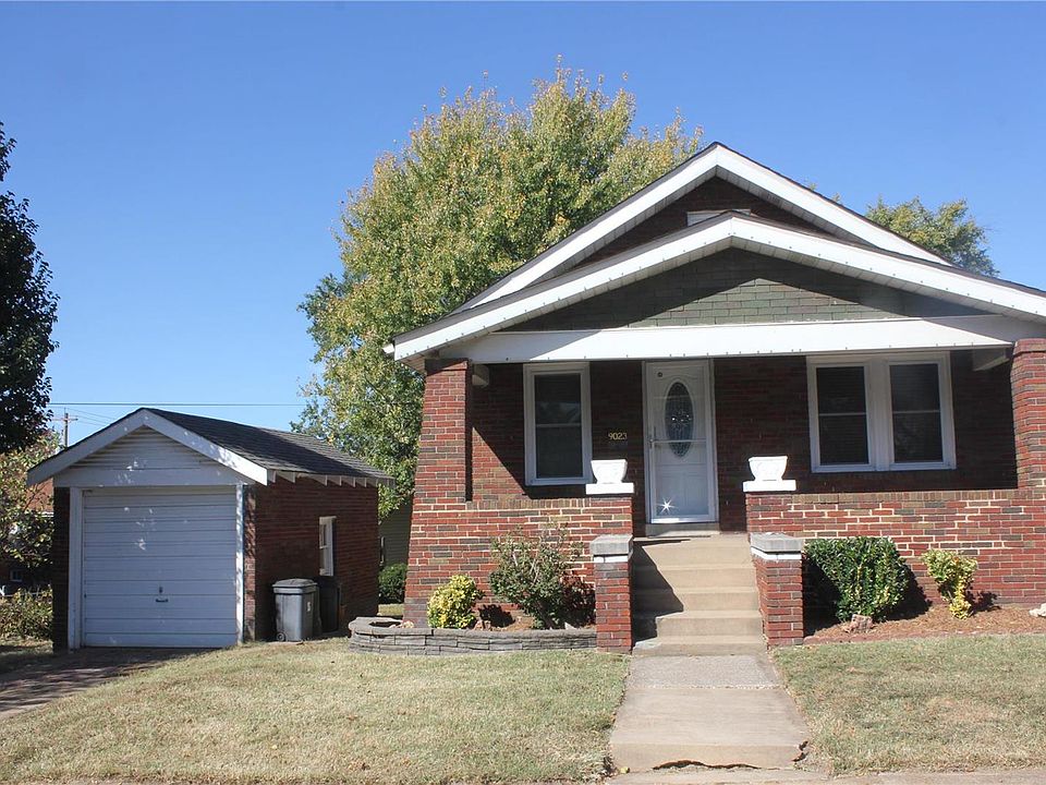 Welcome to a handsome two bedroom, one bath home with a one car detached garage/storage shed. Great curb appeal begins with covered concrete porch and simple landscaping. Living room with hardwood, stained glass, arch way flows to separate dining room. Bedrooms are spacious with ample closet space and overhead lighting. Ceramic tiled eat-in kitchen with appliances to stay with sale, built-in pantry and plenty of counter space. Door off kitchen leads to pie shaped backyard. Hallway bath with linen closet. Lower Level unfinished with w/d hook ups, two storage rooms and open space with shelving. Backyard is pie shaped with a fire pit. Sewer lateral line under house being replaced prior to closing. Young roof (1yr) including garage, Neutral color walls, clear occupancy, hardwood floors, vinyl tilt-in windows, window treatments. ceiling fans. Desirable AFFTON SCHOOL DISTRICT! Note second bedroom-rear window that appears to not be level was due to framing & not structural settling.