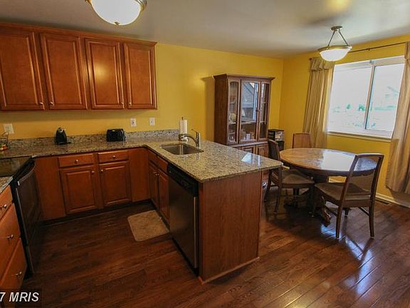 BEAUTIFUL & SPACIOUS ALL-BRICK END UNIT WITH UPGRADED KITCHEN (including granite counters & SS appliances); GLEAMING HARDWOOD FLOORS; UPDATED BATHS; FINISHED LOWER LVL W/WET BAR, 4TH BR, FULL BA & WALKOUT TO NEW PATIO; LARGE ROOM SIZES; NICE DECK - PERFECT FOR ENTERTAINING; ATTRACTIVE WOOD-BURNING FP IN LIV RM; BACKS TO WOODED OPEN SPACE & PATH. CONVENIENT TO MAJOR TRAVEL ROUTES; A MUST SEE!