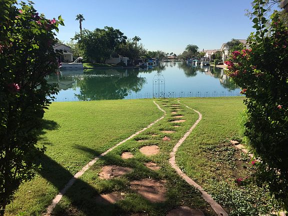 Peaceful WATERFRONT furnished executive rental. 3 bedroom+office on large lot with stunning lake view, steps away from the community pool/spa! This home includes comfortable seating, formal dining for 6, eat-in kitchen & breakfast bar. Primary has TV & king bed, 2nd & 3rd bedrooms offer queen beds. Ceiling fans, newer high efficiency AC & neutral decor. Plush carpet, 20'' tile & custom earth-tone paint throughout. Multiple exits to the extended length covered patio & gorgeous lakeview backyard from den & master. Professionally landscaped backyard offers several seating options on covered & uncovered patios, BBQ, mature trees, lush grass, flowers, bushes & lovely unobstructed views.