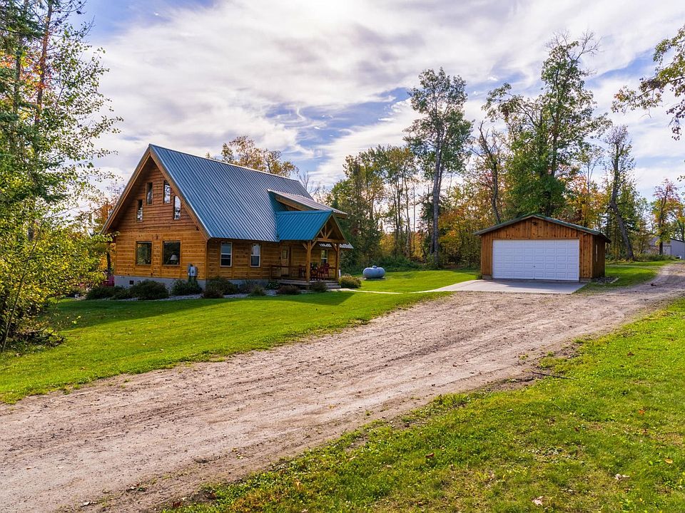 Welcome to your picture-perfect log home retreat! This beautifully updated 3 bed, 3 bath home sits at the end of a cul-de-sac on over 8 serene acres. Enjoy fresh interior paint by Borealis Brushworks, new flooring from The Design Store, and a custom-built entry door. The main level features a spacious primary suite, open-concept living, laundry, and a stunning kitchen with a large island — perfect for gathering.