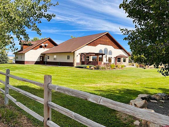 Clean unique 21.83 acre horse property! This beautiful 3 bed, 3,208 sq.ft. custom home is located in rural Montrose The home has custom hardwood floors, granite counter tops, new carpet, two fireplaces, a massive glass shower, and a claw foot tub! If you want to entertain guest don't miss the great room that has a built in bar! the The master bedroom has a gas fireplace, and a bathroom fit for a king. A southern facing back patio won't let you miss the San Juan Views and the full outdoor kitchen. The barn has covered horse run and a guest room, that has a 1/2 bath.