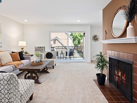 Welcome home to this wonderful remodeled top-floor 1,308 sq ft condo consisting of three bedrooms and two baths. Perfectly located in the desirable Vintner Community, away from streets and parking areas, this home’s prime location provides a private and peaceful environment. The living room features abundant natural light, an inviting fireplace and access to the balcony via upgraded Milgard sliding doors. The adjoining dining area opens to the kitchen and has a nice view of the Vintner’s common area. The kitchen features new Samsung & KitchenAid stainless steel energy-efficient appliances including refrigerator, built-in microwave, dishwasher, electric stove and self-cleaning oven. The hall bath features a shower over tub with designer glass sliding doors, new vanity, sink, faucet, mirrors, lighting and luxury vinyl floors. The primary bath is attached to the large primary bedroom and features shower over tub, new vanity, sink, faucet, mirrors, lighting and luxury vinyl floors. Recessed lighting throughout, dual-pane Milgard windows, freshly painted interior, new baseboards, Toto toilets, section one pest clearance. Move-in Ready! Community pools, gym and meeting room. Convenient to shopping, restaurants and I-680. Served by wonderful award-winning San Ramon Schools!