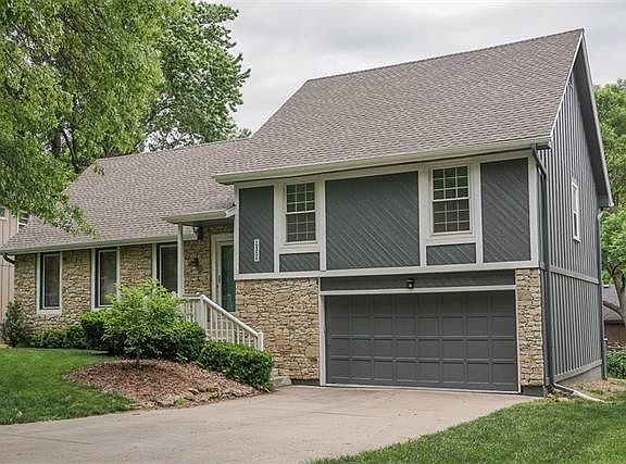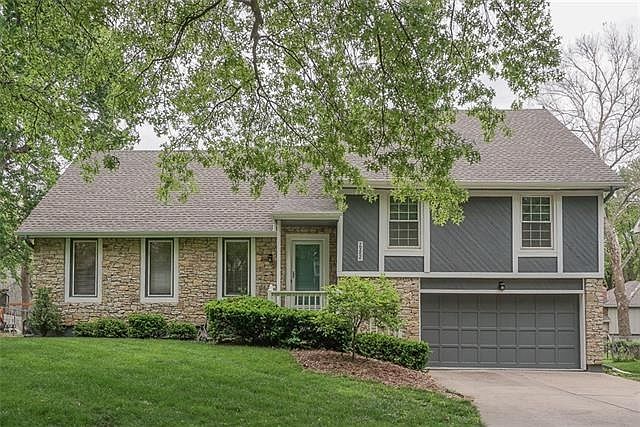 Updated 4 BR, 2.5 Bath S/Split in desirable neighborhood of Country Hill in Lenexa. Kitchen features white cabinetry, SS appliances, granite countertops pantry with roll out shelving and wood floors. Warm, inviting Great Room has Brick front Fireplace and triple slider leading out to party deck and well manicured back yard. Spacious Master Br with vaulted ceiling, fan, WI closet and private bath. Third floor offers good sized 4th/guest bedroom and quaint loft with built-in shelving. Finished basement offers extra living space and plenty of storage. NEW CARPET and FRESH PAINT throughout. HWH new in 2021 and Roof is 2 years old. Neighborhood social activities throughout the year.