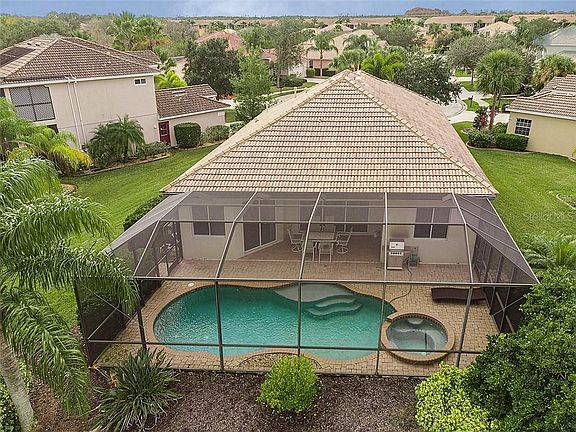 Gate Code - Punch in 02000 or 00527 Welcome to Stoneybrook Golf Community! No mandatory fees! You will fall in love with this meticulous 3 BR + office Pool Home! Gorgeous Lake View on exceptional premium lot! Bright, sunny and open floor plan! Generous Great Room w/tray ceiling, recessed lighting and sliders to lanai. Spacious kitchen w/plenty of cabinets and counter space, walkin pantry, breakfast bar, breakfast nook, SS appliances, gas stove and double sink. Den with french doors and access to pool. Retire to wonderful MBR suite with walkin closet, tray ceiling, tiled shower, soaking tub, dual sinks and pool access! Interior recently painted, new pool pump, fabric hurricane screen for lanai plus aluminum hurricane shutters for rest of house and barrel tile roof! Experience peace and tranquility while enjoying your pool and spa with beautiful serene lake behind. Pool lanai has pavers too. Hard to find private and extra wide premium lot at the end of a cul-de-sac. Live like you're on vacation all year round at gated Stoneybrook Golf Community with 18 hole championship golf course (Heritage Harbour Golf and Eatery), resort style pool and spa, fitness ctr.,active rec center, tennis, pickleball, beach volleyball, bocce ball, shuffleboard, basketball, fishing pier, dog parks and more! Heritage Harbour Golf course offers many different memberships or pay as you play. This community will not disappoint! Close to Anna Maria Island's beautiful beaches, Sarasota, shopping, restaurants, UTC mall and more! Welcome to Paradise! Note: CDD fee in txs.