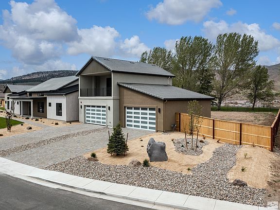 New 2022 custom home on 1 acre with rear-yard access & eastern Sierra views. Luxury interior & exterior finishes throughout. Over-sized 12 x 24 walk in pantry, quartz island in kitchen, slate maple cabinets with under task lighting, Jenn-Air kitchen package with 48" commercial gas range, two dishwashers, furnaces & air conditioners. 4 bedrooms each with private bath. Separate Primary retreat with his/her walk-in closets. Volume ceilings, smooth drywall finish, bonus storage rooms, and LED can lights., Paver driveway and patios, glass pivot entry door, 12 ft x 8 ft tall stacking sliders in Great Room, Master, and Rec room. Designer selected porcelain tile, wood flooring and 8 ft tall solid core bedroom doors. Large separate office, 42" linear fireplace in great room, covered front and rear patios, 4 car garage with storage, upgraded doors & a bonus recreation room above that extends to a large covered deck. Exterior includes Tile & Metal roof, Acrylic sand finish stucco in 2-tone colors, porcelain stone veneer.