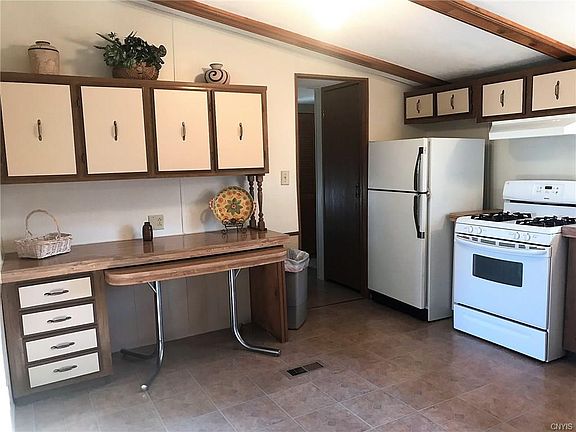Cute, Clean and Cozy with an Oneida Lake View! Affordable and Ready to move right in too today! This manufactured Ranch home was painstakingly resurfaced with new carpet, paint, and many many more amenities. Almost two acres with a Detached 2 car garage. A quiet neighborhood close to restaurants on a dead end street. (ends at mega lake home) Turningstone and Syracuse both close commutes. The homes is all an one level with a master suite sporting a large master bath. 3 beds 2 full baths. Laundry Room comes equipped. A big Breakfast bar with pass thru cupboards above. Dining, Living, and Den all open concept with cathedral ceilings. A great year round home or perfect for a snowbird's summer pad by the lake. Just off Route 31 near at the end of Canastota ,N Main Street Extension.
