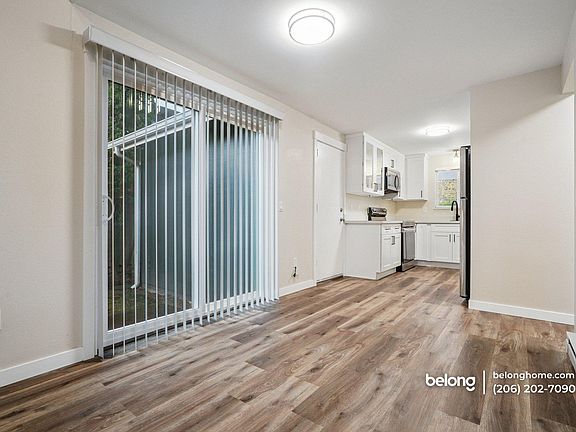 Vaulted ceilings, wide windows, and an open living area create a bright and airy welcome as soon as you walk in this gorgeous Seattle home! Natural light pours across the floors, while a white brick fireplace gives the room a stylish focal point for cozy evenings. Sliding glass doors open to your private patio, offering a smooth connection between indoors and outdoors. From the living area, your kitchen delivers both function and charm with stainless steel appliances, generous cabinetry, and sleek counters that make cooking and hosting a pleasure. A dining space sits nearby, ideal for relaxed meals or casual get-togethers. Two well-sized bedrooms and 1.5 baths offer plenty of comfort and privacy. Laundry is tucked conveniently inside, so everyday tasks are easy to keep up with. Automatic sprinklers help maintain the landscaping with little effort, and your garage parking spot ensures secure, reliable access year-round. Located in Seattle's Greenwood neighborhood, this home puts you near everything you need. Pick up groceries at Fred Meyer or PCC Community Markets, grab coffee at Diva Espresso, or explore nearby Green Lake for walking, jogging, or picnics. Quick access to Aurora Ave N and I-5 makes commuting to downtown Seattle or the University District straightforward, while local dining and entertainment options are just minutes away! *Fireplace is for decorative use only and cannot be used without consent from Belong. *Our homes come as-is with all essentials in working order. Want upgrades? Request it through the Belong app, and our trusted pros will take care of the rest!